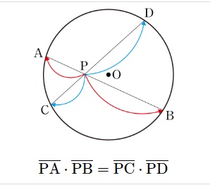 원 위에 두 현 AB, CD가 주어질때, 교차점이 P라고 한다면.. PA * PB = PC * PD라는 정리