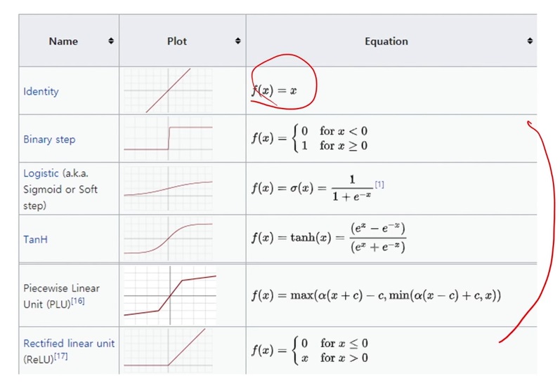 identity는 linear함수이며 나머지는 non-linear 함수이다.