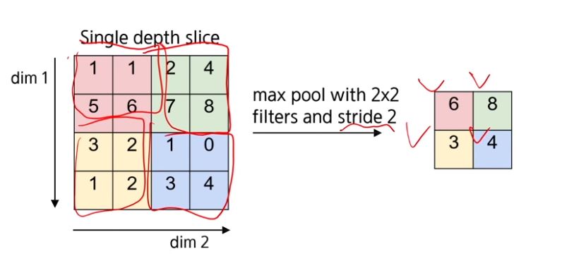 2*2 max pooling filter을 stride = 2로 움직이면 위와 같이 4칸을 찍는데