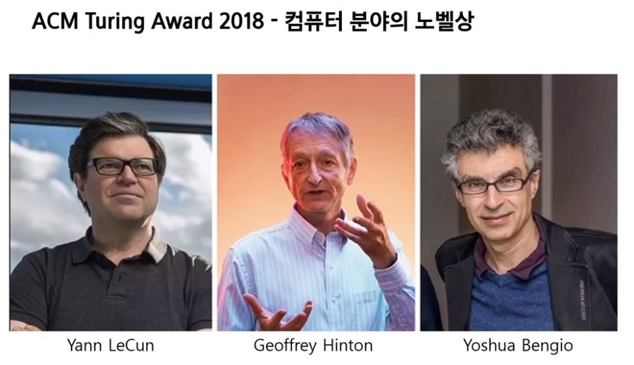 아무튼 이런 노력으로 현재 인공지능의 대가들은 2018년 컴퓨터 분야의 노벨상이라 불리는 상을 수상