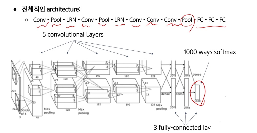 LeNet은 input image size가 28*28인데 AlexNet은 이보다 큰 227*227 image를 받았다