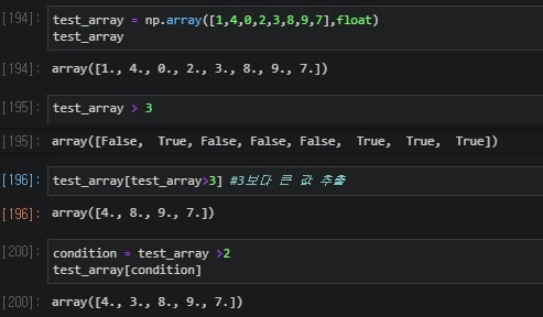 condition을 넣어 condition에 맞는 array를 추출하는 방식