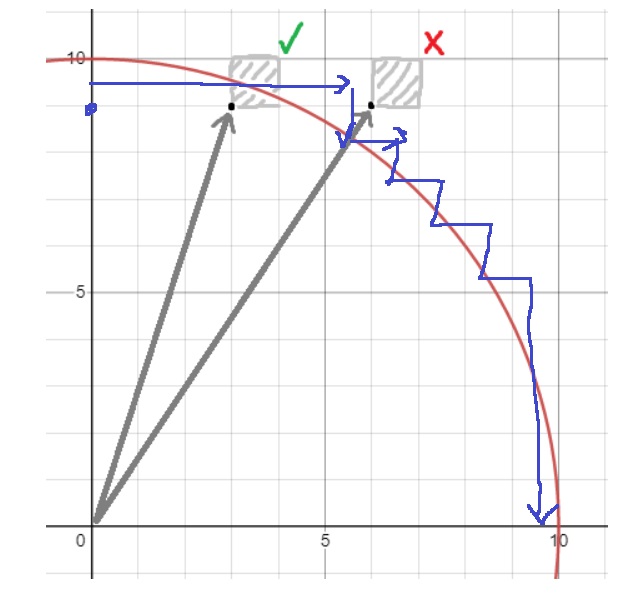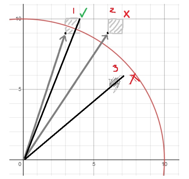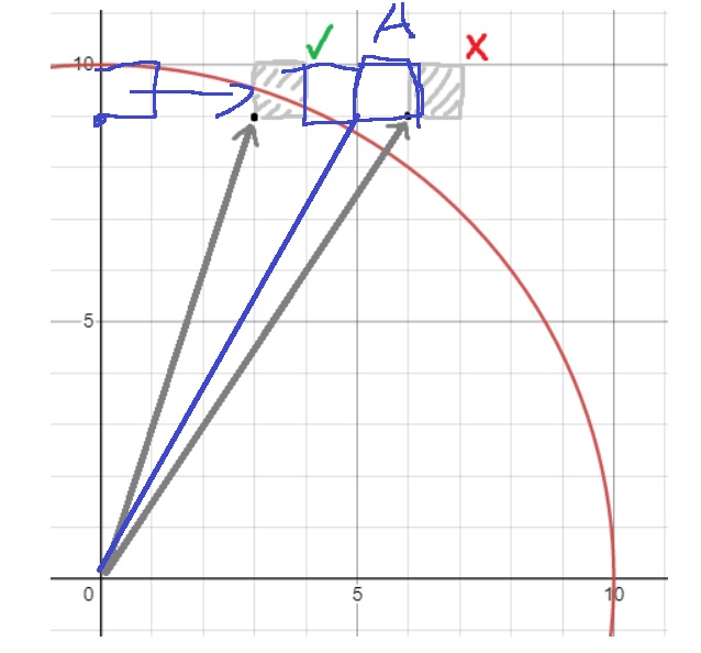 "좌측 하단까지의 거리"가 원의 반지름 이상이 된 순간 그 뒤는 굳이 안봐도 된다