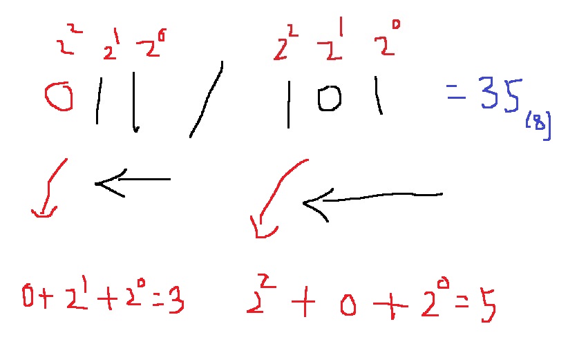 그래서 11101은 8진수로 35가 된다.
