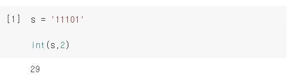 s가 2진수이면.. int(s, 2)는 2진수 s를 10진수로 바꿔서 내주고