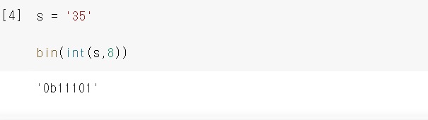 int(s,8)하면 8진수 s를 10진수로 바꿔주고