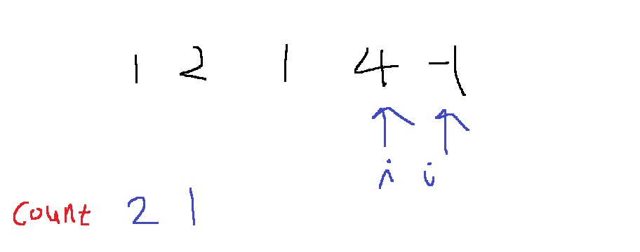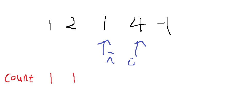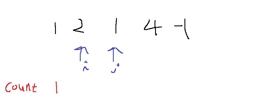 i, j가 위와 같이 가리킬때, k - arr[i] - arr[j] = 4 - 1 - 2 = 1이니까, 1이 hashmap에 존재하는지 검사해서 있으면 count해서 더해주는데