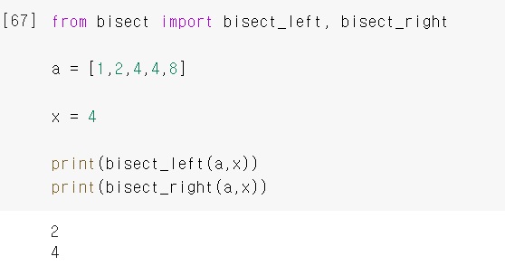 bisect_left(a,4)는 2를 반환하고