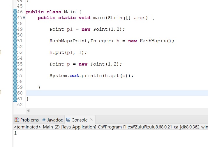 따라서 Point를 다음과 같이 정의하고 진짜로 HashMap이 내가 원하는대로 동작하는지 테스트해본다면..?