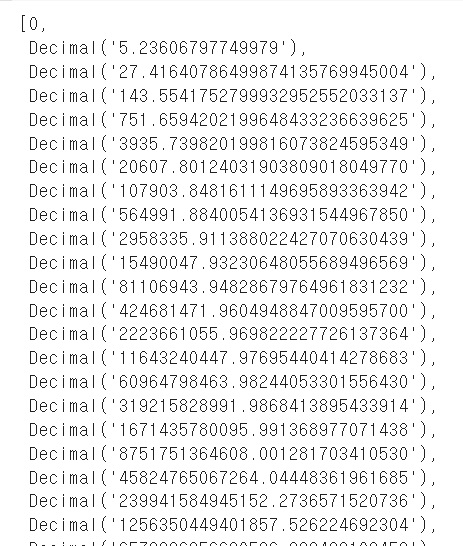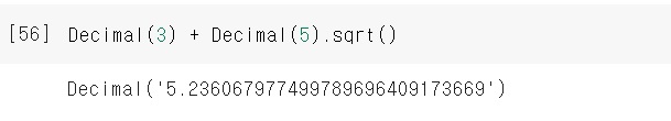 그러면.. 이번엔 Decimal(3+5**(1/2))로 실수를 Decimal()에 그대로 넣어서 계산을 해봄