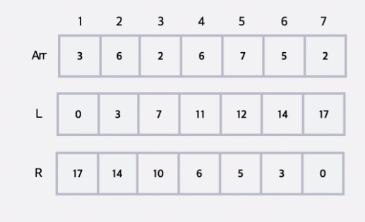 특히 L배열과 R배열을 O(N)에 구할 수 있어야하는데.. 다음과 같이 구한다면??