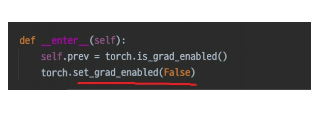 with torch.no_grad():로 with와 함께 사용하여 감싸진 문장들은 grad_enabled인 parameter들을 전부 False로 바꿔준다