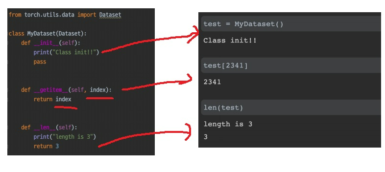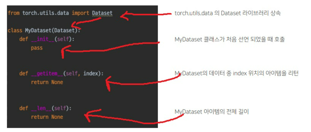 Mydataset이라는 class는 torch.utils.data의 Dataset의 기능들을 전부 가졌으면 해서 Dataset을 상속받음