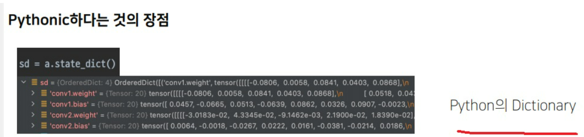 state_dict()로 불러온 parameter 저장소는 사실 python의 dictionary