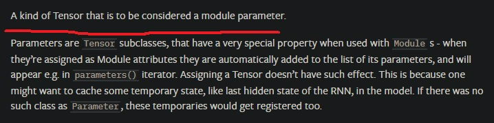 parameter tensor와 그냥 tensor은 다르다.