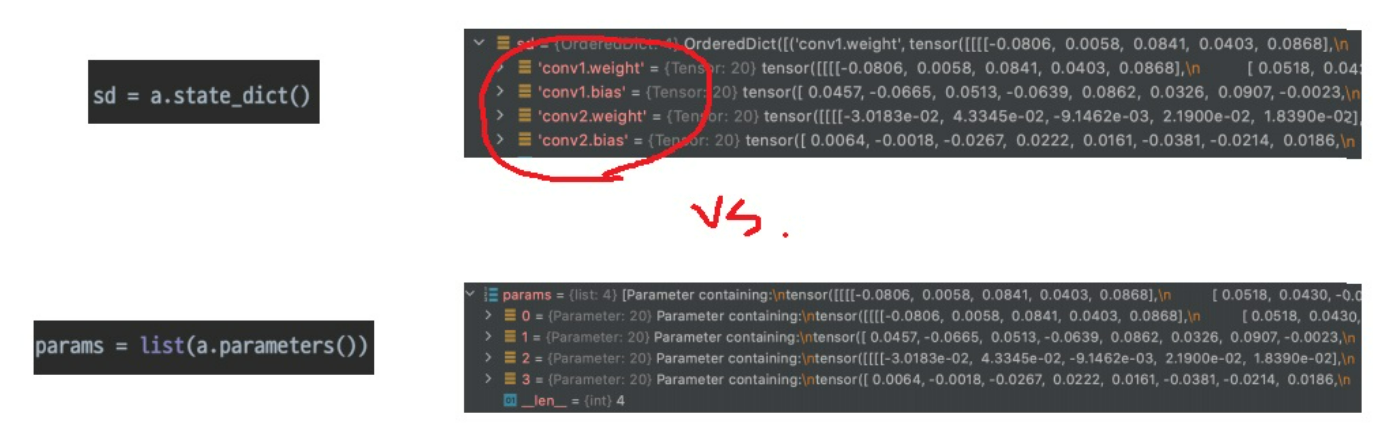 .state_dict()는 무엇이 무엇의 parameter인지 확인 가능
