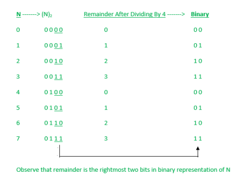 Find the remainder when N is divided by 4 using Bitwise AND operator - GeeksforGeeks