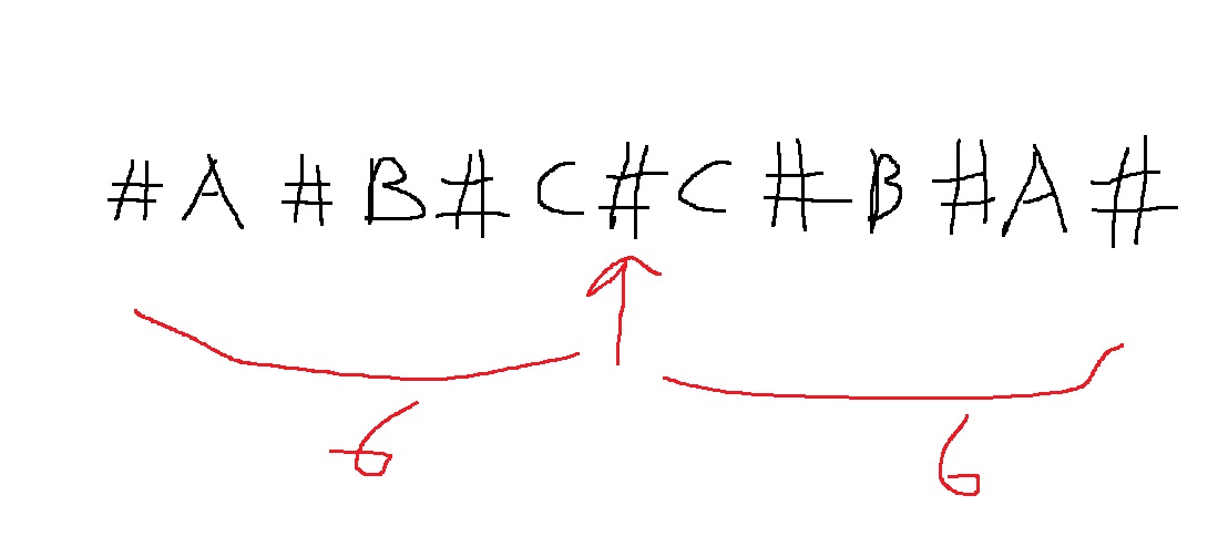 manacher 알고리즘을 수행하기 위해 #을 붙여가지고