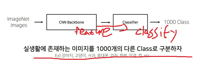 실생활에 존재할법한 다양한 variance를 표현한 ImageNet의 대용량 데이터를 CNN backbone 구조가 받아 feature를 추출하고