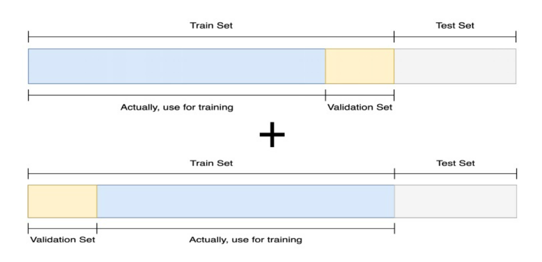 남은 train set으로 학습을 진행하고 validation set으로 중간 검증을 수행