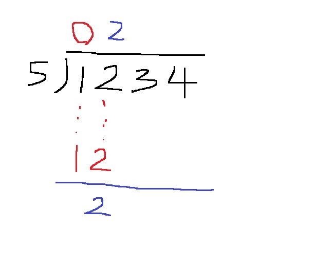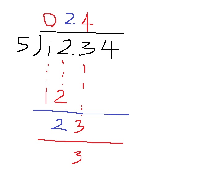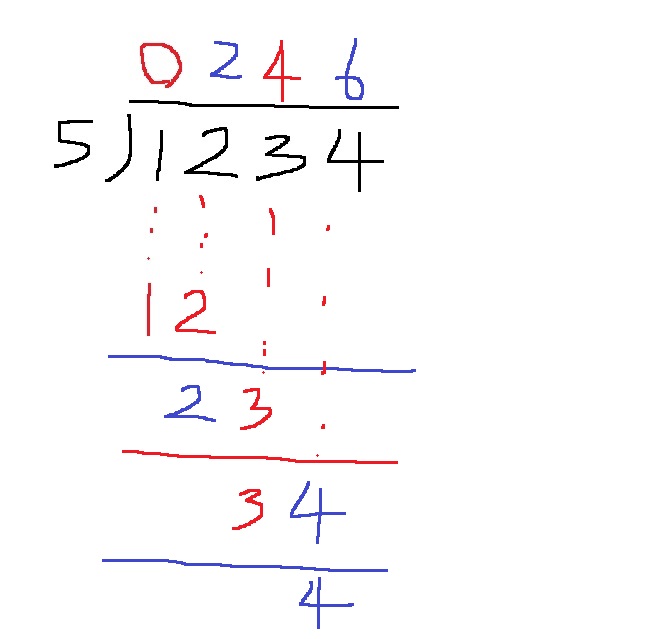 그러면 나머지가 4니까.. 결국에 1234를 5로 나눈 몫은 246이고 나머지는 4이다