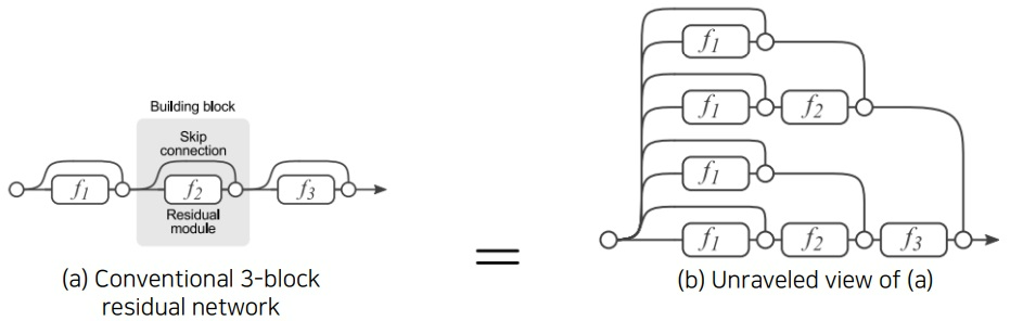 그 중 하나는 주어진 input과 output을 연결하는 residual layer의 수가 n개라면 gradient가 흐를수있는 경로가 2n이나 된다는 것