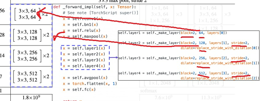 layer1,layer2,layer3,layer4가 위에서 나눴던 4개의 block
