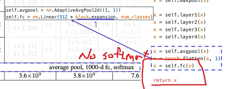 softmax를 취한 값이 아니고 그냥 fully connected layer를 통과한 값을 return함