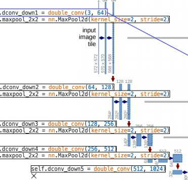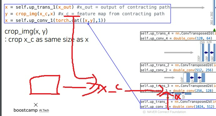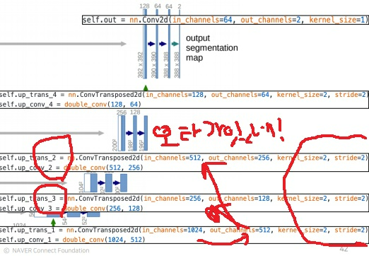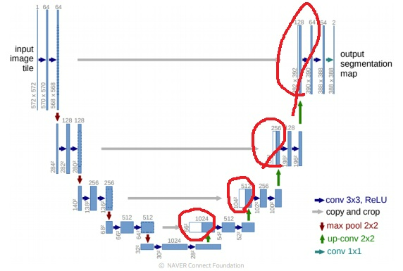 이제 봤는데 잘 보면 단계별 contracting path와 expanding path사이 이미지 size가 안맞다..