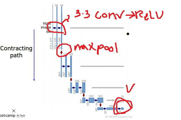 contracting path에서는 double_conv와 maxpooling의 반복으로 구현