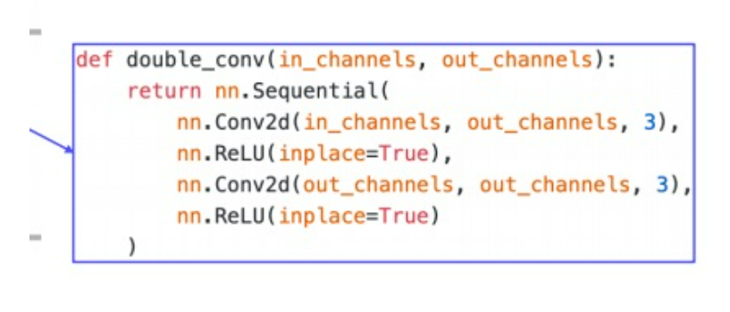 double_conv는 자세히보면 3*3 conv와 ReLU의 반복