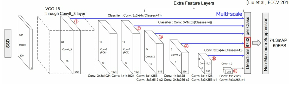 1,2,3,4,5,6 각각에서 feature map 크기를 고려한 적절한 크기의 bounding box로 전부 구해와서 최종단계로 가져옴