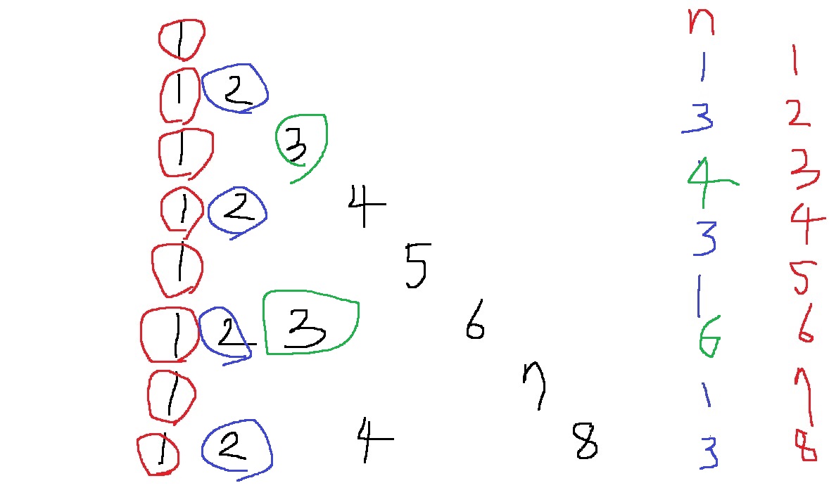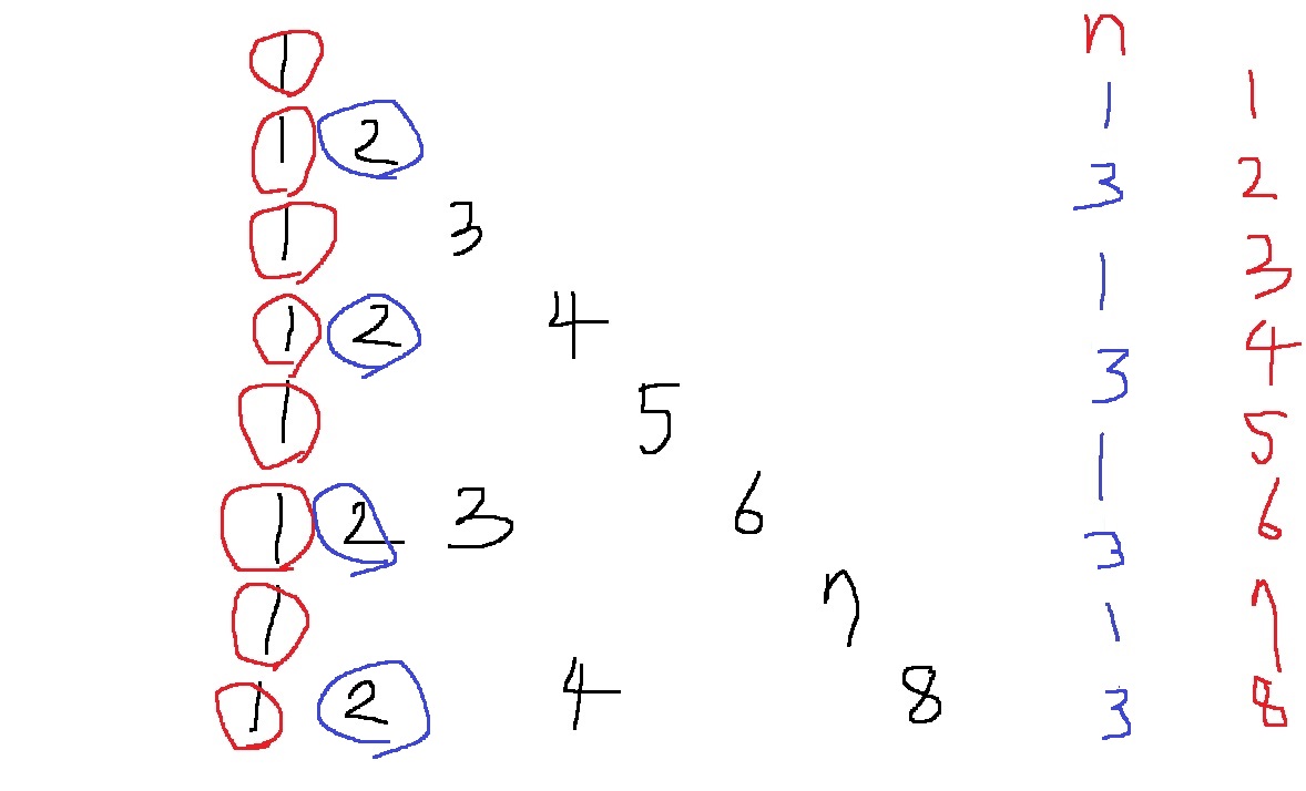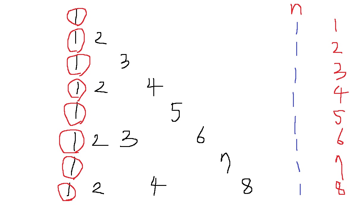n = 8이라 한다면 1+3+4+7+6+12+8+15 = 56이 구해져야한다는 소리