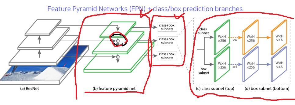 low level feature와 high level feature를 모두 활용하기 위한 3단? Feature pyramid network 활용