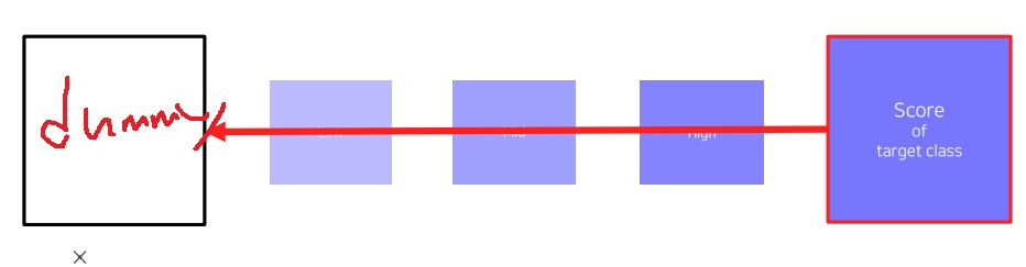 먼저 임의의 dummy image를 넣어 관심있는 class에 대해 예측 score를 추출