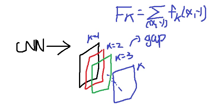 gap feature $F_{k}$를 fully connected layer에 넣으면 class score를 구할 수 있다