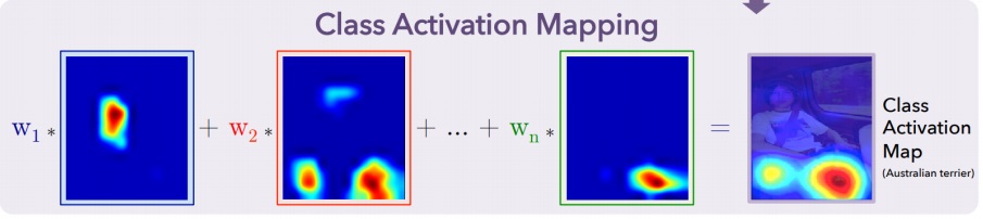 $w_{k}^{c}$는 각 채널 k의 feature map이 class c를 판단하는데 얼마나 영향을 미치는지 가중치라고 볼 수 있다