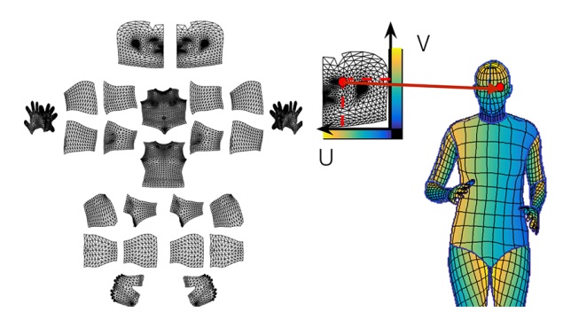 다시 말하면 UV map과 3D 모델은 움직이더라도 한번 UV map상 위치를 알면 3D 모델의 위치를 추적할 수 있는 불변의 관계에 있다.