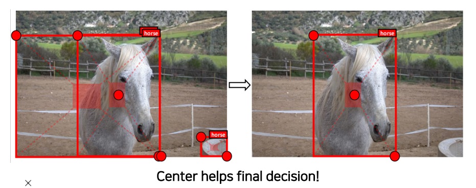 bounding box는 top left point와 bottom right point뿐만 아니라 center point도 detection 성능에 중요한 역할을 한다