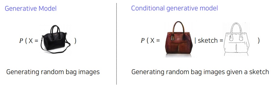 conditional generative model은 하나의 sketch라는 정보를 주어 그 sketch에 맞는 bag을 random하게 생성