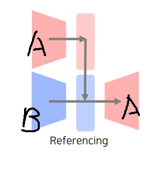 3-3) modal A에서 modal A로 보내고 싶은데 modal B의 정보를 참조하여 더욱 결론을 잘 내리고 싶은 referencing