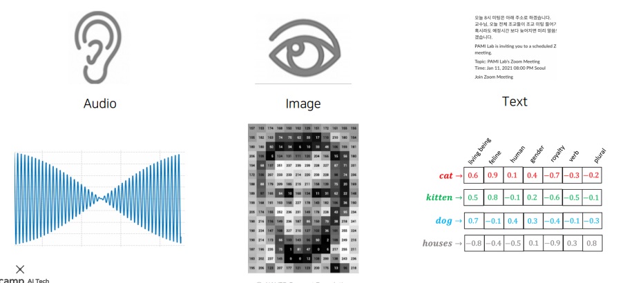 다양한 형태의 데이터를 사용하여 학습을 하고자하는데 여러 타입의 데이터를 표현하는 방법이 모두 다르다는 것이 문제다.
