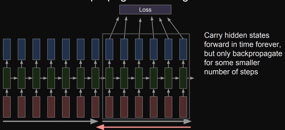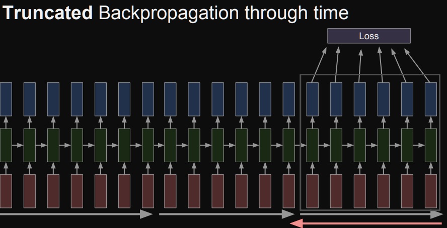그래서 제한된 sequence를 가지는 truncation에서 backpropagation을 진행하고 다음 truncation에서도 진행하고 과정을 반복한다