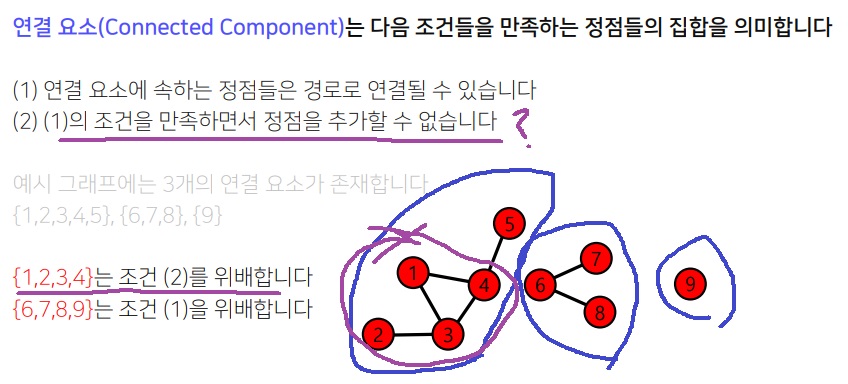 쉽게 생각해서 서로 연결되어 모여있는 집합들이 연결요소다.