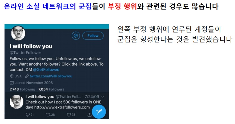 SNS의 군집들은 사회적으로 의미있는 사회적 무리(Social circle)를 형성