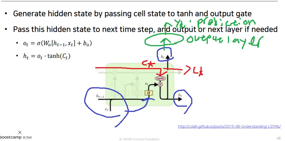 그 후 output layer에 집어넣어 prediction으로 $y_{t}$를 뽑아낸다.