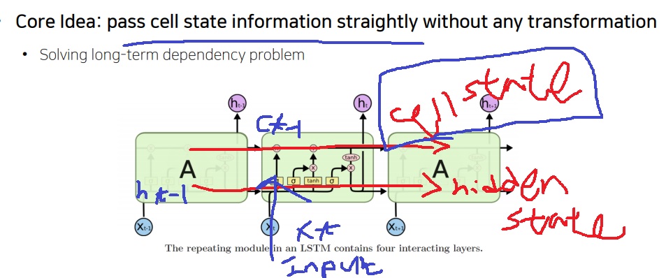 cell state vector를 이용하여 필요한 정보를 최대한 길게 보낸다