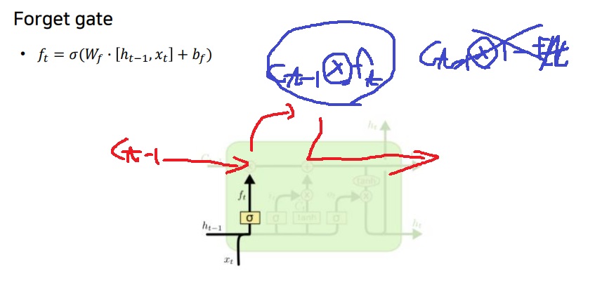 cell state의 $C_{t}$에서 $f_{t}$만큼 기억한다