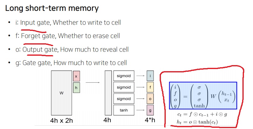 순간 step에서 “를 닫아야한다면 tanh()를 이용한 output gate에서 정보가 나가 hidden vector로 구해지면서 정보표출