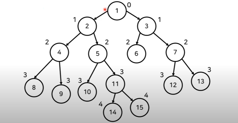 루트 노드에서 각 노드로의 거리가 깊이와 동일